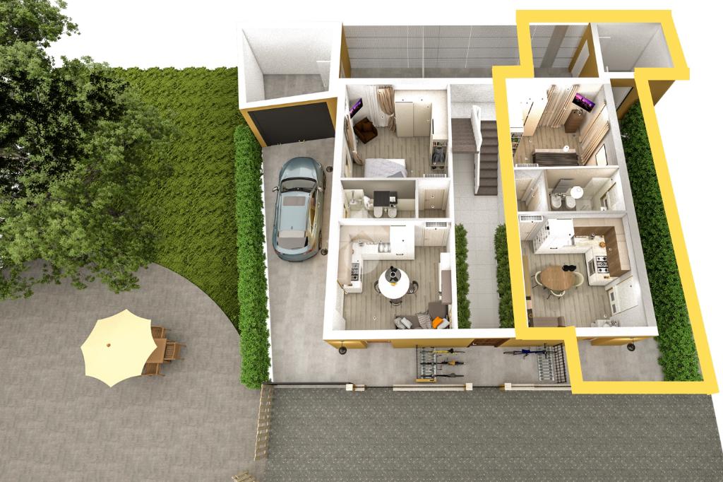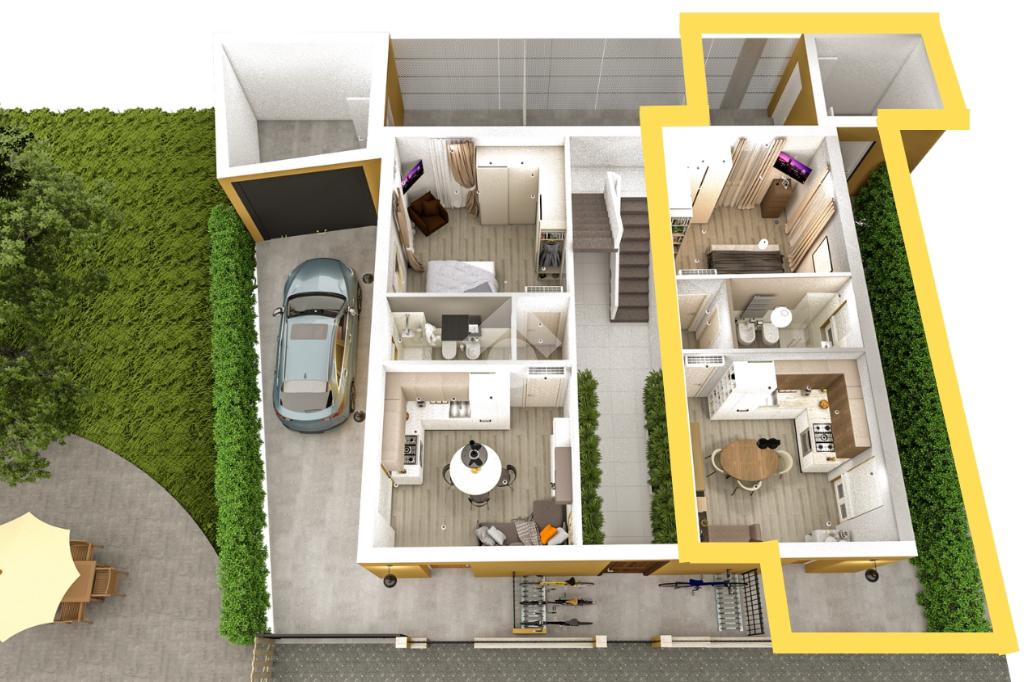La palazzina ospiterà cinque appartamenti: un ampio quadrilocale al secondo piano, privo di modifiche interne, e quattro esclusive unità al piano terra e primo piano (tre bilocali e un trilocale), tutti ristrutturati con soluzioni moderne e materiali di qualità, per garantire il massimo comfort e una vita contemporanea.