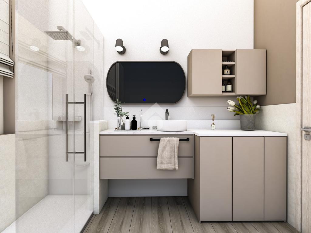 Bagni moderni con sanitari sospesi piatto doccia e rivestimenti in gres porcellanato
