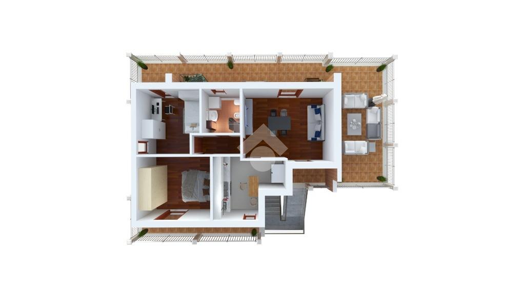 L'immobile si distingue per la qualità degli ambienti e la funzionalità degli spazi sia interni che esterni ed è composto da soggiorno, cucina abitabile separata, 2 camere (matrimoniale e doppia), bagno con finestra, balcone ed un ampio terrazzo vivibile prospiciente la zona giorno. Completa la proprietà un grande garage al piano terra.