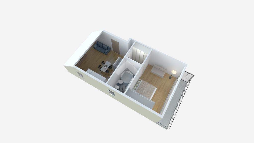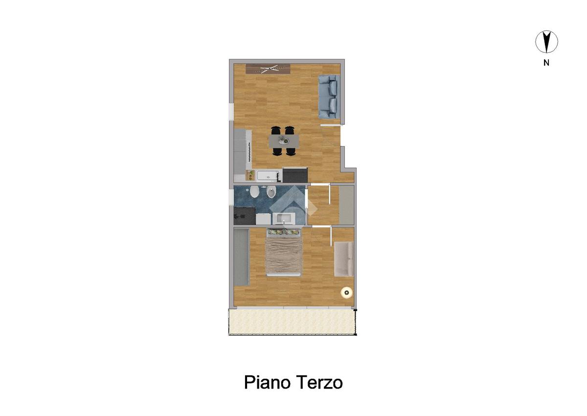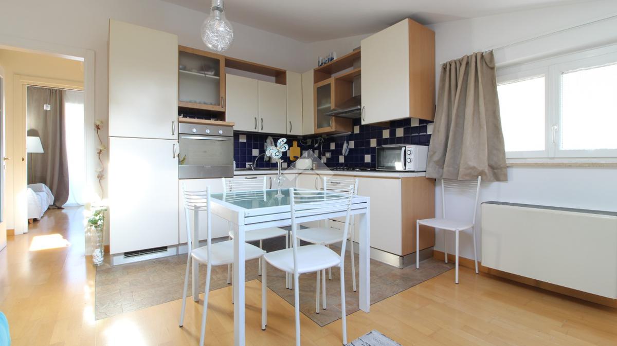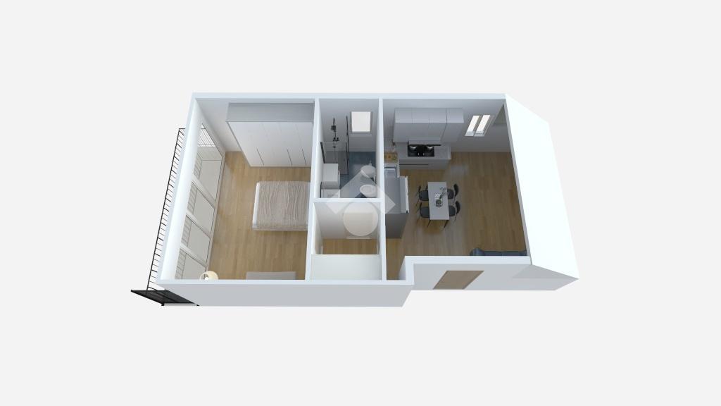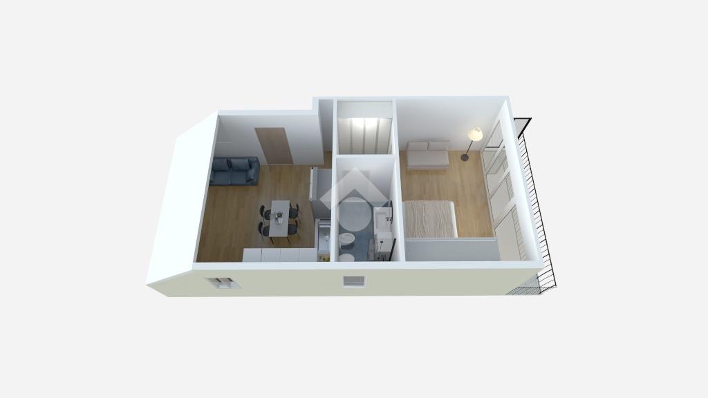 L'appartamento è composto da un soggiorno con cucina a vista, camera matrimoniale, bagno con finestra, ed un balcone prospiciente la camera esposto a nord.