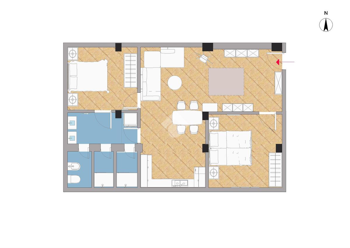 L’immobile si sviluppa su piano seminterrato adibito a civile abitazione e si presenta perfettamente rifinito e curato come un appartamento tradizionale, con spazi funzionali e ben distribuiti. La composizione interna prevede una comoda zona giorno, due camere da letto matrimoniali e servizi. Le finestre con aperture alte garantiscono una buona aerazione naturale, aumentando il comfort abitativo e l’attrattività dell’immobile anche per soggiorni prolungati.