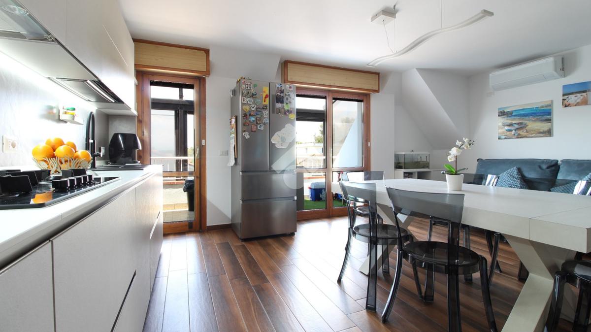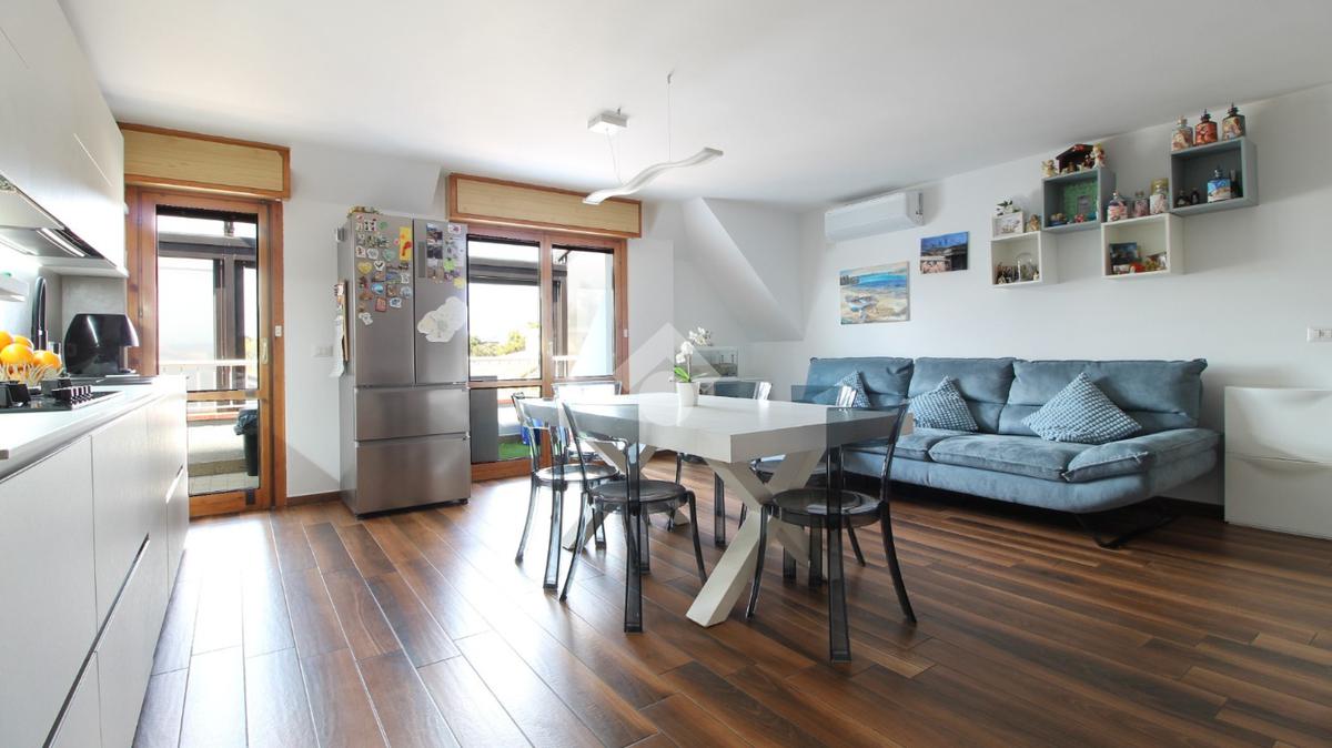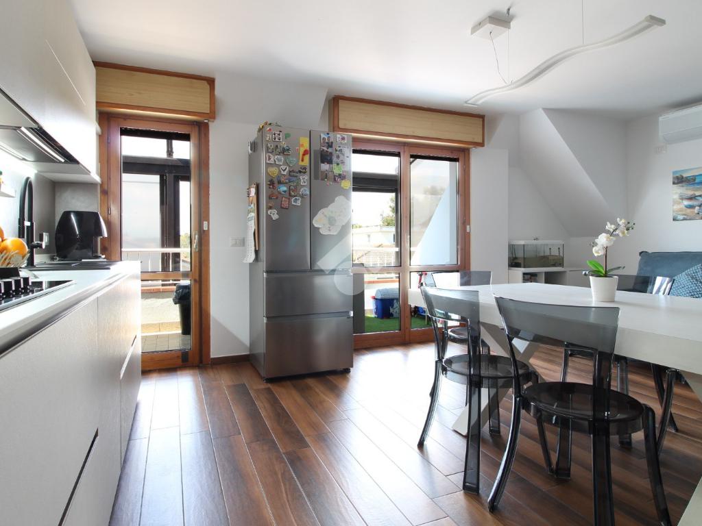 L’appartamento si presenta in ottime condizioni ed è pronto per essere abitato senza necessità di interventi, essendo stato recentemente ristrutturato; rifinito con pavimentazione in gres effetto parquet, infissi in legno con doppio vetro, tapparelle elettriche gestibili da remoto, portoncino blindato, impianti autonomi, aria condizionata, sistema di allarme. Gli ambienti risultano ampi e ben illuminati e le leggere spiovenze tipiche della mansarda non compromettono in alcun modo la piena vivibilità degli spazi.